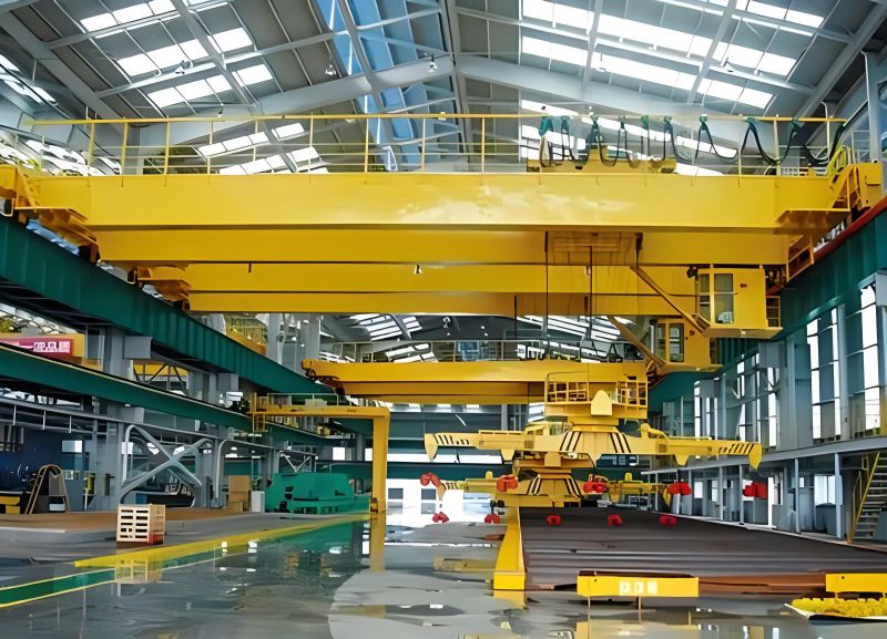 雙梁起重機(jī)利用電磁鐵來搬運(yùn)鋼鐵材料的裝置叫做電磁起重機(jī)。電磁起重機(jī)的主要部分是電磁鐵。接通電流,電磁鐵便把鋼鐵物品牢牢吸住,吊運(yùn)到指定的地方。切斷電流,磁性消失,鋼鐵物品就放下來。電磁起重機(jī)使用十分方便,但必須有電流才可以使用,可以應(yīng)用在廢鋼鐵回收部門和煉鋼車間等。